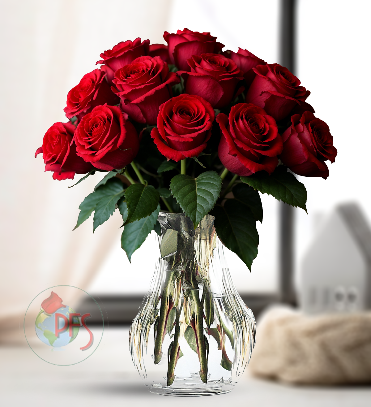 Vased Dozen Roses